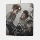 Ce délicat ornement en céramique à base de peinture noire de famille est la parfaite décoration moderne des arbres de Noël. Le design minimaliste romantique présente une belle et élégante typographie noire à l'aspect épuré et simple. Personnalisez votre ornement à double face avec une photo, votre nom de famille et l'année.