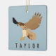 Cet ornement de Noël personnalisé illustre un faucon à queue rousse en vol brun et brun contre un arrière - plan bleu clair et votre nom ou message court. Trouvez des cadeaux et des produits sur le thème des faucons tachetés coordonnés dans la collection Hawk et Blackbird de Asterisk Designs.