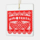 Cet ornement de Noël est orné d'une bannière mexicaine en pique-nique rouge avec la phrase Feliz Navidad sur le devant en blanc vif. L'arrière a un endroit pour customiser avec un nom de famille et l'année dans une police serif en dalle rouge.