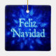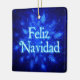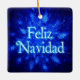Un essaim de flocons de neige fractaux bleus. Le texte espagnol "Feliz Navidad" apparaît en bleu et blanc éclatant.