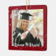 Créez un ornement commémoratif de fin d'études avec une ou deux photos du diplômé (une sur le devant et une sur le dos), leur nom et l'année de classe avec le titre de typographie du script de brosse GRADUATE contre un arrière - plan rouge modifiable avec étoiles. Contactez le concepteur via Zazzle Conversation ou makeitaboutyoustore@gmail.com si vous souhaitez modifier ce design ou sur un autre produit.