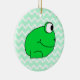 Une bande dessinée mignonne de grenouille verte. Cette grenouille de regard drôle est sur un arrière - plan vert clair de motif de zigzag.