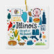 Commemorate your trip to the state of Illinois with this modern keepsake Christmas ornament, featuring hand-drawn style illustrations of iconic food, animals, landmarks, landscapes, and culture. Personalize the back to mark your US adventure and create a memory you'll hang up on the tree for the Holidays year after year.