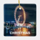 "Joyeux Noël" Ornement en céramique Bleu et Or Londres, avec une photo du London Eye La nuit. Idéal pour les amateurs et les brits londoniens.