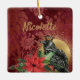 Le décor de Noël parfait pour ceux qui aiment leurs vacances avec un peu de Goth. Le design présente un corbeau vintage avec illustration de couronne avec un bouquet poinsettia aquarelle sur arrière - plan brocart de Noël vintage. Personnaliser avec nom ou monogramme
