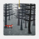 Un renard rouge sauvage solitaire se dresse sous les pins dans une forêt sombre. Une peinture paysagère pour les amoureux des animaux, de la nature et de la faune.