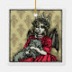 Red Lucia and Cat (l'un des 6 designs) de la série "Pop Goth Holiday" de l'artiste américain Dean A. Kendrick. Décor de Noël en porcelaine blanche de 2,75 po x 2,75 po. Déplaisant, étrange, festif et mortel pour goth ou steampunk gotes. Faites ce Noël sombre et psychédélique !