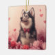 Ornement En Céramique Malamute d'Alaska avec Rose - Saint-Valentin