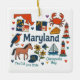 Commémorez votre voyage dans l'état du Maryland avec cet ornement moderne de Noël de gardien, avec des illustrations de style dessiné à la main de la nourriture iconique, des animaux, des points de repère, des paysages et de la culture. Personnalisez le dos pour marquer votre aventure aux Etats-Unis et créez un souvenir que vous accrocherez à l'arbre pour les fêtes année après année.
