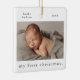 My First Christmas Simple Baby Photo Ornament avec minimaliste type et photo sur le devant. Le dos a une deuxième photo et grand nom complet superposition et la date de naissance du script. Cliquez sur le bouton Modifier pour customiser cette conception avec vos photos et détails.