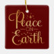 Ornement En Céramique Peace on Earth Gold Script Red Holiday