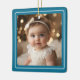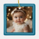 Ornement En Céramique Photo bébé Turquoise Noël moderne Script blanc