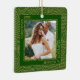 Votre photo préférée de mariés, mariés ou couples est présentée sur un ornement en céramique carré avec des lignes or et des points motif sur vert. Personnalisé et téléchargez votre propre image pour créer des ornements d'arbre de Noël pour vous-même ou donner comme cadeau à la famille, amis, parents et grands-parents! PLUS DE DESIGNS dans notre magasin.