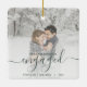 Commémorez votre fiançailles avec ce magnifique ornement de gardien moderne. Le texte vert dit "Notre premier Noël engagé", avec le mot "engagé" dans un élégant script d'écriture manuscrite avec des fioritures avant et après. Remplacez l'exemple d'image par votre photo préférée, et ajoutez vos noms et l'année. Un filtre dégradé blanc permet de faire apparaître le texte.
