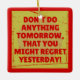 Un drôle de design typographique sur les regrets, cela confond le passé et le présent tendu et n'a pas de sens. Jusqu'à tout ce que vous pourriez regretter demain, hier.