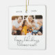 Cette photo script moderne Happy Holidays ornament comprend deux de vos photos préférées (à l'avant et à l'arrière) de votre famille ainsi que votre nom de famille et votre date. Espace pour plus de texte à l'arrière.