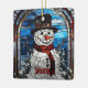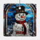 Décor de Noël en verre tendu avec un design de bonhomme de neige. Personnalisez-le avec une année ou tout texte personnalisé.