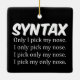 Illustration de typographie amusante qui a le mot syntaxe, puis quelques phrases expliquant l'importance du placement de mots lorsque vous écrivez. Le design amusant est de cueillir votre nez. Le mot est déplacé à des positions différentes dans la phrase pour lui donner des significations différentes. Je ne choisis que mon nez. Il s'agit d'un design qui conviendra à toute personne qui apprend ou enseigne l'anglais.