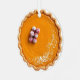 Here's a cute flirty pumpkin pie Christmas ornament. On the back is a cute pun, 'Let's give them pumpkin to talk about."