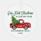 Script de brosse moderne Notre premier Noël dans notre nouvel ornement en métal maison comprend l'aquarelle Vintage Camion rouge avec arbre de Noël - Script vert de forêt