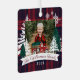 Ferme rustique arbres de Noël frais photo de famille gardien de saké ornement métal. L'ornement peut être customisé avec le nom de famille, l'année, monogramme, et photo. Arrière - plan en damier rouge avec pins rustiques et flocons de neige et notre camion vintage en aquarelle rouge dessinée à la main, s'occupant d'un sapin de Noël. Le nom de famille est affiché dans une bannière blanche. Oeuvre de Moodthology Papery.