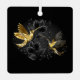 Colibris de bijoux en noir et or sur arrière - plan gris décoré de plantes. Bijoux. Oiseau doré. Oiseau d'or.