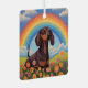 Un ornement commémoratif Dachshund personnalisé avec un tableau d'un heureux Dachshund sur une colline paradisiaque idyllique avec un magnifique arc en ciel au-dessus. Symbolisant le Dachshund a traversé le pont arc-en-ciel jusqu'au paradis des chiens. Personnalisez-le avec le nom de votre chien Dachshund (ou tout autre texte) à l'arrière de l'ornement. Fait un merveilleux cadeau commémoratif pour n'importe quel amoureux des chiens Dachshund.