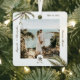 Ce magnifique ornement de lune de miel mariage de keepsaké présente nos palmiers aquarelles peints à la main, capturant le romantisme serein d'un paradis tropical. Affichez une photo spéciale sur le devant et une autre sur le dos pour commémorer vos moments inoubliables de votre mariage ou lune de miel de destination. Personnalisez avec vos noms, date de mariage ou de lune de miel, emplacement et coordonnées pour une touche vraiment significative. Un monogramme personnalisé au design en crête de palme ajoute un détail tropical élégant qui symbolise votre amour et votre unité. Parfait pour les jeunes mariés, les voyageurs ou les couples qui célèbrent leur premier Noël ensemble, cet ornement est un souvenir intemporel de l'endroit où votre éternité a commencé. Design original et aquarelle peinte à la main par ©Moodthology Papery