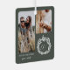 Elégante et moderne photos de couple fiançailles personnalisées monogramme ornement. Notre ornement personnalisé présente notre modèle de guirlande d'hiver dessiné à la main avec monogramme et deux photos, salutation et nom du couple. Diffusez l'amour et applaudissez cette saison de vacances avec ce magnifique ornement fiançailles personnalisé. Conception par Moodthology Papery