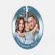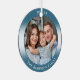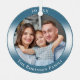 Décor de Noël élégant, élégant et royal. Ces ornements brillants offrent un design frais et nouveau avec votre première photo à l'avant et une riche typographie affichant votre nom de famille et l'année, le tout mis en évidence dans un cadre sophistiqué bleu et blanc dégradé. L'arrière de l'ornement affiche votre deuxième photo et texte lisant "Joyeuses fêtes", "Joyeux Noël" ou tout autre salut souhaité. Ces ornements extraordinaires sont des cadeaux de conservation parfaits qui apporteront des souvenirs durables et joyeux chaque saison de vacances.