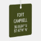 Coordonnées de la carte de latitude et longitude pour Fort Campbell - située entre l'TN de Clarksville et Hopkinsville KY Stencil, en caractères blancs, sur l'arrière - plan vert de l'armée. Personnalisez cet ornement sur le dos avec la date ou le nom