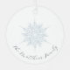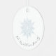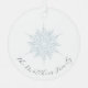 Flocon de neige bleu glacé nom de famille personnalisé en calligraphie ornement métal. Design détaillé de flocon de neige bleu glace. Customisez avec vos noms en calligraphie marine foncée. Conçu pour s'adapter à notre collection de Noël de flocon bleu glace.