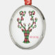 L'ornement de Noël en forme ronde. Montré ici en blanc avec le texte de Joyeux Noël et l'impression d'un cerf plaid avec des bois. Le métal d'argent Customise cet article ou acheter comme indiqué.