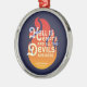 Ce joli ornement littéraire présente la citation de The Tempest de William Shakespeare "L'enfer est vide, et tous les diables sont ici" contre un feu orange sur un arrière - plan bleu. *Veuillez noter que le filigrane Zazzle qui apparaît dans l'aperçu du zoom n'apparaîtra PAS sur le produit imprimé final. © Bookish and Wonderful