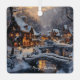 Ce magnifique ornement en céramique carré présente une aquarelle captivante d'un village enneigé, baigné par la lumière douce de la lune et les lumières scintillantes. Des ponts surplombent un ruisseau réfléchissant, ajoutant à l'atmosphère sereine et nostalgique. Le message "Joyeux Noël" complète parfaitement cette scène idyllique.