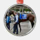 L'envahisseur européen Mendelssohn, se tenant tranquillement dans le pré pour le 100th fonctionnement de la tasse prestigieuse d'or de jockey Club chez beau Belmont Park. Portant le bleu royal, #3 le saddlecloth, Mendelssohn est marché par son entraîneur et manipulateur de chaque côté dans le pré.