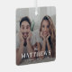 Un ornement moderne et élégant de vacances photo avec votre nom de famille présenté dans la typographie classique associé avec une police manuscrite en blanc sur votre photo pleine taille. Votre photo spéciale sera magnifique dans ce design unique, moderne et minimal. Un design amusant et minimal pour se démarquer de la foule cette saison de noël! L'image montrée n'est à des fins d'illustration que pour être remplacée par votre propre photo. L'image de l'espace réservé est celle d'un jeune couple joyeux et somptueux qui se repose sur les coudes, sur le sol de leur maison moderne neutre.