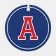 Créez votre propre ornement de gardien avec ce design monogrammé élégant! Ce design simple et élégant présente une typographie inspirée du maillot de sport, avec une police de bloc rétro. Un modèle en forme de cercle personnalisé avec un prénom initial, une photo préférée et un nom. Un design simple et élégant, parfait pour des photos d'enfants, d'adolescents, de famille et d'animaux de compagnie. Disponible avec un fini mat ou brillant. Couleurs imprimées : bleu foncé, bleu marine, rouge et blanc.