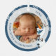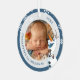 This is a precious, rounded Christmas ornament, perfect for commemorating a baby's milestone first holiday season. The ornament features a sweet, personalized baby photo at the center, framed by a lovely icy blue border decorated with playful snowflakes. The design is charmingly accented with Disney's Olaf the snowman, who looks cheerfully ready for a warm hug. The border is inscribed with personalized text celebrating the baby's 1st Christmas and the specific year. This stunning piece is a delightful, lasting keepsake to mark a baby's first magical holiday!