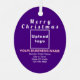 Joyeux Noël! Métal ornement avec Joyeux textes de voeux de Noël, votre nom d'entreprise ou d'entreprise, logo, adresse et numéro de téléphone. Les dessins sont des textes roses et blancs sur arrière - plan violet et sur forme ovale. Ornement pour décorer le sapin de Noël dans votre magasin, magasin ou bureau. Ornement pour accueillir visuellement vos clients cette saison de vacances et pour annoncer votre entreprise ou promouvoir votre marque. Customisez-le et utilisez-le pour sensibiliser la marque. Veuillez vérifier l'apparence après avoir téléchargé le logo et tapé des textes. Si l'apparence vous plaît, vous pouvez passer votre commande maintenant. Si vous avez besoin de redimensionner et déplacer le logo et les textes pour s'adapter à cet ornement ou à d'autres styles que vous choisirez, s'il vous plaît changer dans l'outil de conception. Vous pouvez également effectuer d'autres modifications selon vos préférences dans l'outil de conception, comme changer la couleur de l'ornement, la couleur de police et le style de police. Joyeux Noël! Je vous souhaite plus de ventes cette saison des Fêtes.