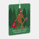 Cet adorable ornement de Noël Père Noël Squatch est imprimé sur les deux côtés et est facile à personnaliser, ce qui rend simple de créer votre propre souvenir de Noël drôle. Bigfoot dans un chapeau de Père Noël marche sur MERRY SQUATCHMAS dans une police blanche stupide avec une police plus simple plus petite ci-dessous est parfait pour ajouter votre nom de famille ou message de vacances court. père Noël Squatch porte un grand sac de jouets rouge, où vous pouvez ajouter l'année dans une police blanche en gras, et un sucre de canne rouge et blanc pendant qu'il voyage à travers les bois. Sept pins en faux cuir dans l'arrière - plan ajoutent à la texture imitation de ce Sasquatch en faux cuir marron clair dans un ornement en aluminium personnalisé chapeau de Père Noël. Personnalisez ce ornement de Noël en métal carré à double face avec Père Noël Squatch pour une tenue de Noël amusante.