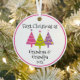 Le premier Noël en tant que grand-père ou grand-mère est un moment très spécial. Célébrez-les avec ce joli ornement composé d'arbres de Noël roses, violets, jaunes et verts. Vous pouvez remplacer le texte "grand-mère et grand-père" si vous voulez le donner à une nouvelle tante, soeur ou toute autre personne que vous voulez. Changez l'exemple de photo au dos de l'ornement avec votre propre photo.