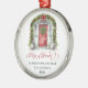 Premier Noël Monogrammé Nouveau Foyer, Créez un cadeau de conservation magnifique et élégant pour célébrer votre 1er Noël dans votre nouvelle maison. Aquarelle avec porte rouge joyeuse et verdure fleurie de vacances pour célébrer la saison de Noël. Monogramme avec adresse et date. Élégante typographie de script dit New Home.