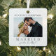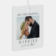 Cet ornement de Noël carré est une façon simple et élégante de célébrer votre première saison de vacances en couple marié. Il comporte une photo horizontale de chaque côté, toutes deux encadrées d'une bordure blanche propre autour des bords pour un look poli. Sur le devant, "Our First Christmas Married" est écrit en polices serif classiques, avec vos noms affichés en bas dans une calligraphie manuscrite douce pour une touche personnelle. Le dos tient votre deuxième photo, parfaite pour un moment mariage ou une mémoire de lune de miel, ainsi que votre année mariage, affichée en dessous de la police serif correspondante. Entièrement personnalisable, vous pouvez mettre à jour le texte, les polices et les photos en fonction de votre style. Un souvenir intemporel et significatif pour marquer le début de votre vie ensemble, ou un cadeau réfléchi pour n'importe quel couple marié en cette période de fêtes.