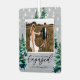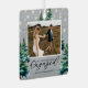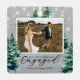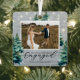 Entrez dans un pays des merveilles d'hiver avec nos ornements de vacances rustiques! Avec le charme d'un arrière - plan en bois gris, des lampes à cordes scintillantes et des arbres de Noël aux aquarelles enchanteurs. Personnalisable avec une photo, le dicton "nos premiers noël engagés", plus les noms des couples, et l'année.