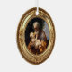 This exquisite Jesse Tree ornament features Saint Joseph with the Infant Jesus by Baroque painter Guido Reni (c. 1635). The tender scene captures a deeply human moment—the Infant Jesus reaching up to tug gently at St. Joseph’s beard, while the saint gazes upon Him with awe and wonder. Reni masterfully conveys both the mystery of the Incarnation and the humble, fatherly love of the man chosen to guard the Savior of the world.