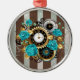 Ornement En Métal Steampunk Clock and Turquoise Roses on Striped