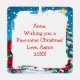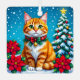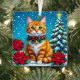 Cute Christmas cat themed ornament with a beautiful orange cat with red poinsettias and snowy Christmas tree background. On the back you can add your own custom message.