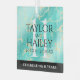Célébrez le 11e anniversaire de mariage turquoise avec cet ornement commémoratif ! Un élégant lettrage noir et blanc sur un marbre jaune et un arrière - plan bleu verdâtre ajoutent une touche mémorable à cette occasion spéciale et à cette étape importante. Personnalisez avec le nom du couple, les dates du mariage et le message de félicitations. Design © W.H. Sim. Voir plus sur zazzle.com/expressionsoccasions