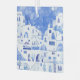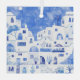 Une aquarelle bleue et blanche représentant la belle île grecque de Santorin. Art original de Nic Squirrell.